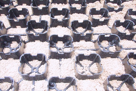 - In die DURAGRID-Zellen das jeweils empfohlene Sand-Erdgemisch oder Kies füllen –